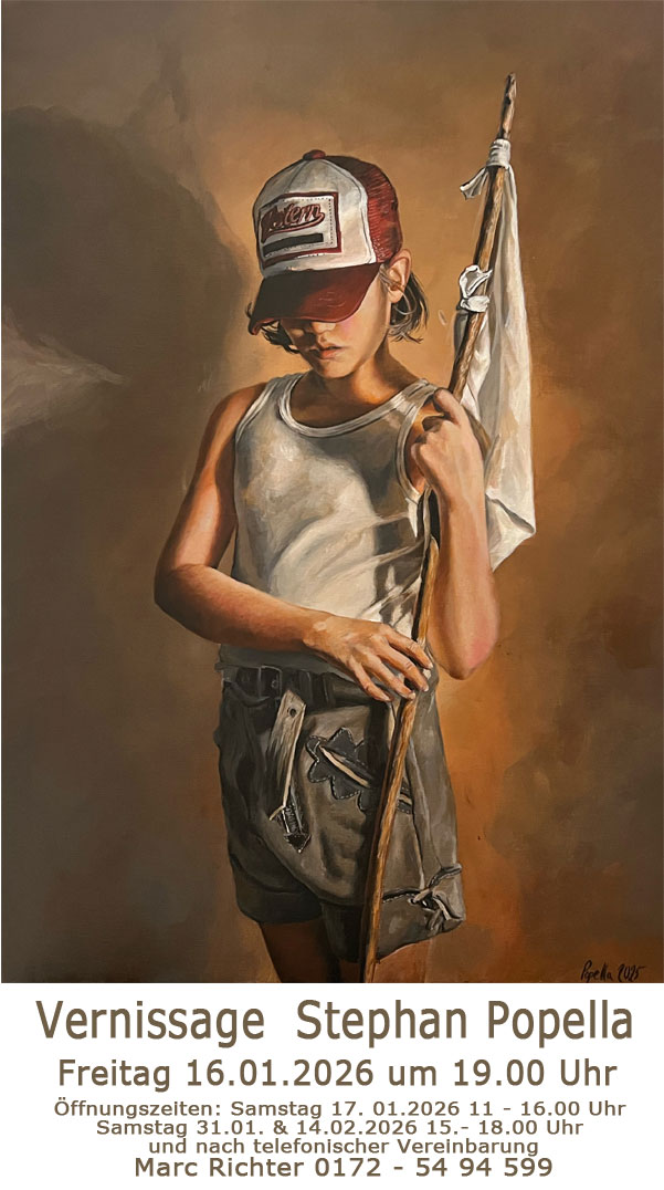 Mit seinem figürlichen Werk nimmt Stephan Popella eine besondere Position im zeitgenössischen Kunstkontext ein. Seine Malerei bewegt sich zwischen den Einflüssen der Neuen Leipziger Schule und der Tradition realistischer Bildsprachen. Dabei greift Popella auf ein breites kunsthistorisches Spektrum zurück: von den ungeschönten Darstellungen früher realistischer Malerei bis hin zu Bildformen, die einst der ideologischen Inszenierung von Macht und Autorität dienten. Gerade letztere unterzieht er einer subtilen, oft ironischen Befragung.